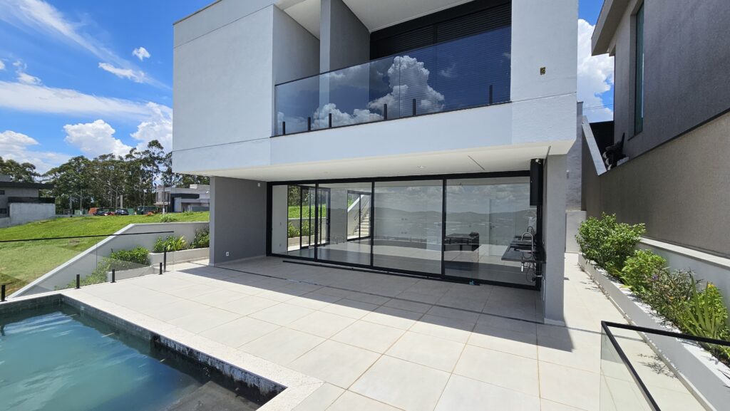 A arquitetura contemporânea, de linhas puras e volumes bem definidos, valoriza a luz natural, os vãos generosos e a integração entre os ambientes, proporcionando uma sensação imediata de amplitude e conforto.